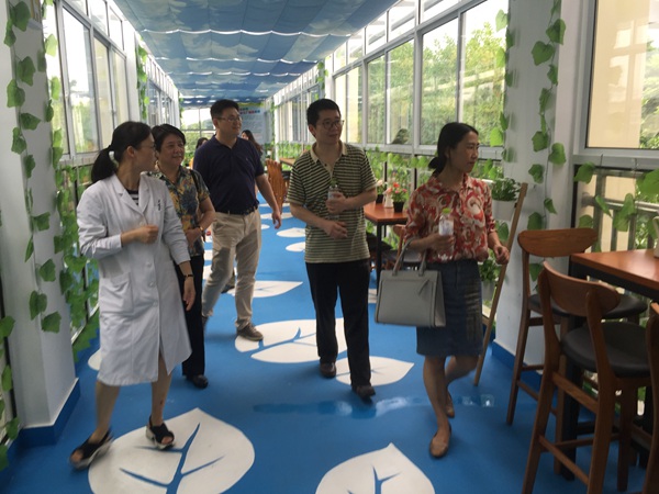 7月1日,社员们来到福利院。福利院的丁老师为社员们介绍了福利院的历史和基本情况。福利院的王医生向大家介绍了孩子们所存在的精神、心理问题和治疗情况。来自杭州市第七人民医院的社员朱晓华、王奕權、谢飞、唐光政、周圆月等几位专家与福利院的医生、护士进行了交流。在得知福利院有300多位儿童,却只有3名医生,带孩子去医院就医的难度较大时,医生社员们纷纷表示,愿意用自己有限的私人时间给予帮助。朱晓华解答了福利院关于精神疾病残疾认定手续方面的一系列疑问,并提出了有用的建议和指导。