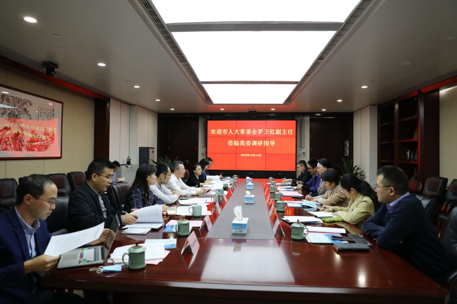 带着对健康杭州的牵挂,10月14日下午,杭州市人大常委会副主任、 九三学社杭州市委主委罗卫红带队走访调研杭州市卫健委。市卫健委党委书记、主任方健国,党委委员、副主任王旭初及相关处室负责人参加座谈。市人大常委会教科文卫工委副主任余红英、市人大和九三学社相关处室工作人员陪同调研。